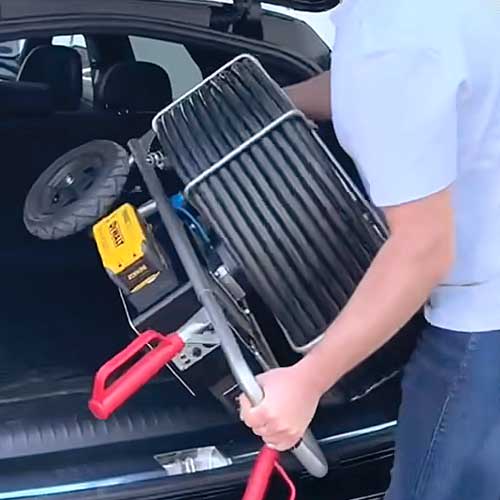 The frame holds 164’ of hose but thanks to its lightweight and mobile design, the NANO E can be easily transported by one person—even in the trunk of a car.